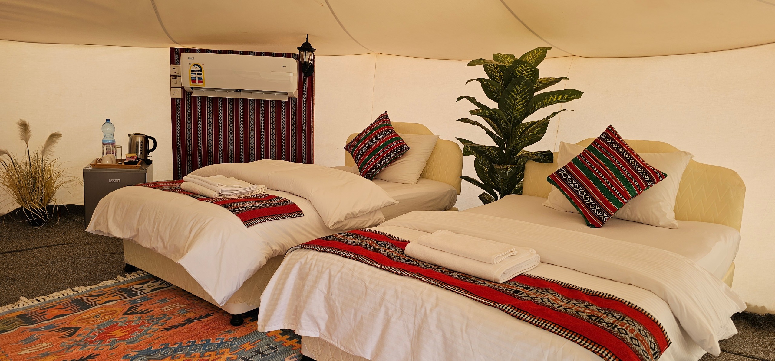 At Al Salam, we make it a point to permeate excellence in every aspect of your desert retreat. Our tents are meticulously maintained and thoughtfully designed with modern amenities, and you will still be able to enjoy the authentic desert ambiance. We have climate-controlled luxury tents, and traditional-style rooms to satisfy diverse interests and adventure levels: